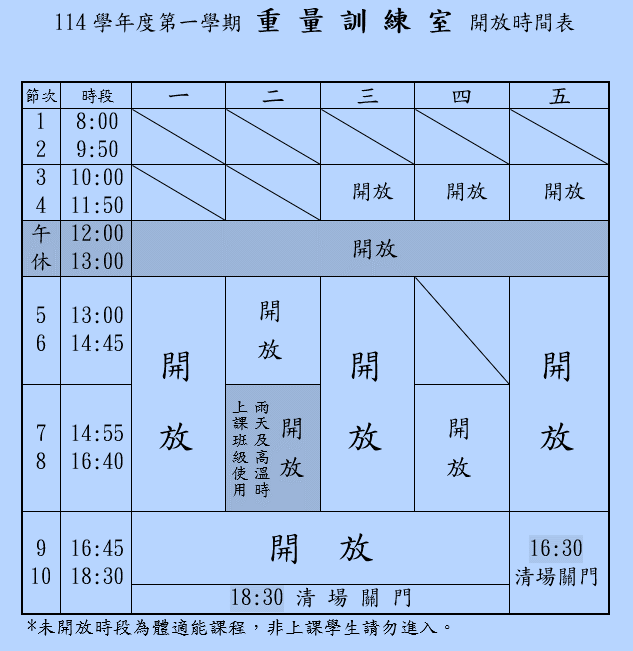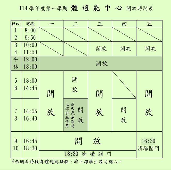 體育館2樓 場地時間表